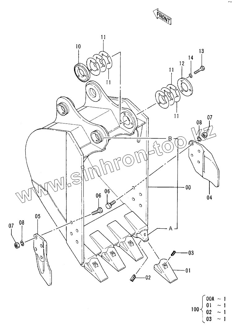 Каталог запасных частей к технике: Hitachi EX-100-2. BUCKET 0.33,