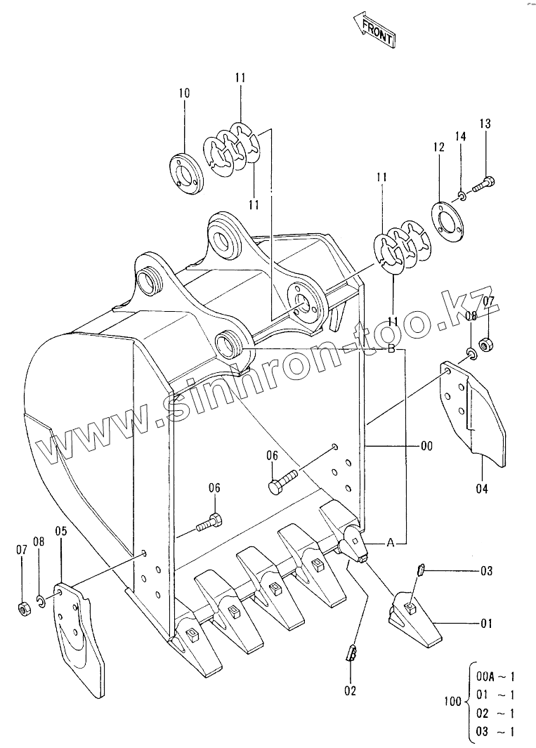 Каталог запасных частей к технике: Hitachi EX-100-2. BUCKET 0.5,