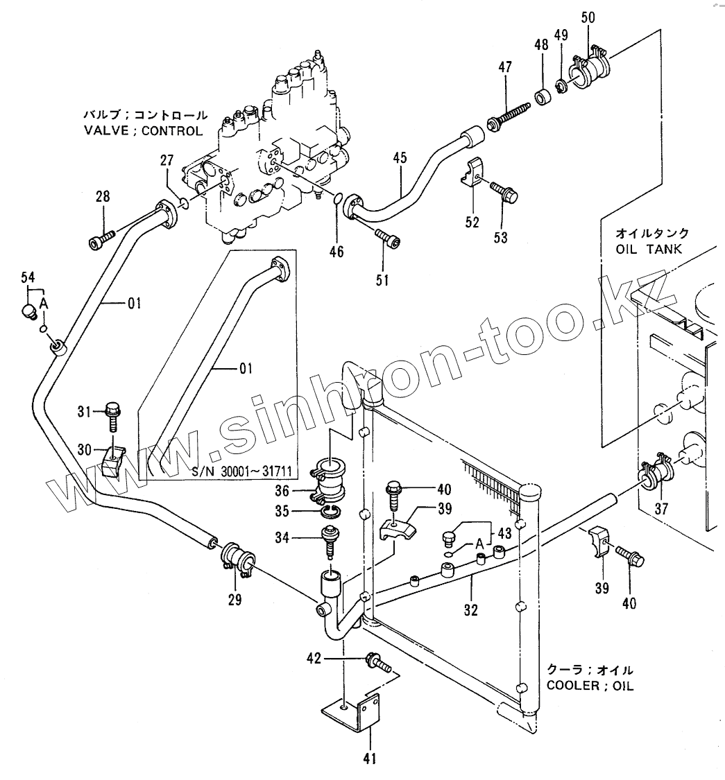 Каталог запасных частей к технике: Hitachi EX-100-2. OIL COOLER PIPINGS (2)