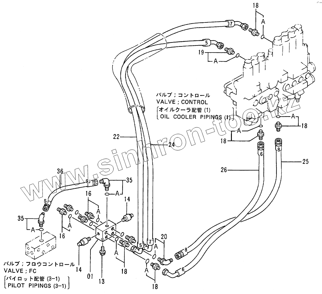Каталог запасных частей к технике: Hitachi EX-100-2. PILOT PIPINGS (3-2)