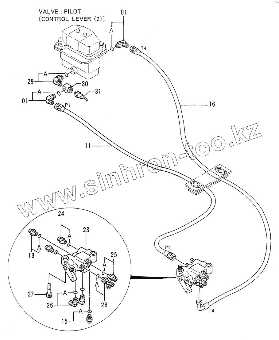 Каталог запасных частей к технике: Hitachi EX-100-2. PILOT PIPINGS (4-2) <N.EUROPE>