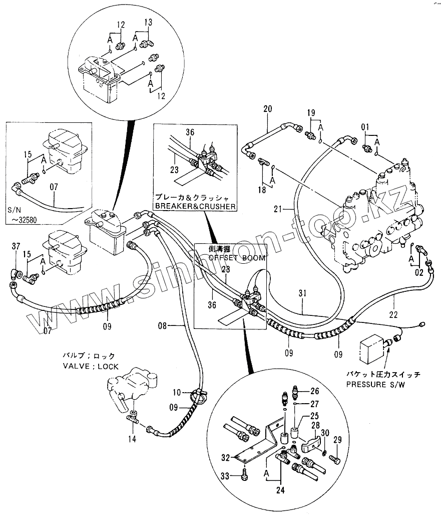 Каталог запасных частей к технике: Hitachi EX-100-2. PILOT PIPINGS (OFFSET BOOM, BREAKER & CRUSHER)