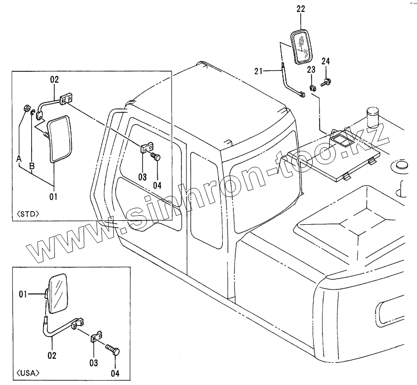 Каталог запасных частей к технике: Hitachi EX-100-2. REARVIEW MIRROR