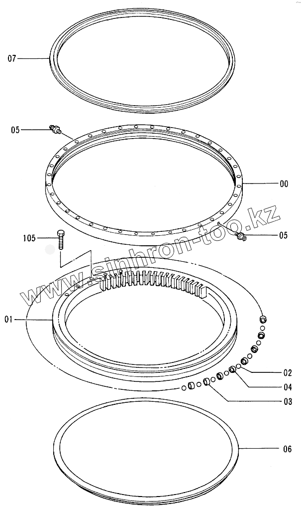 Каталог запасных частей к технике: Hitachi EX-100-2. SWING BEARING