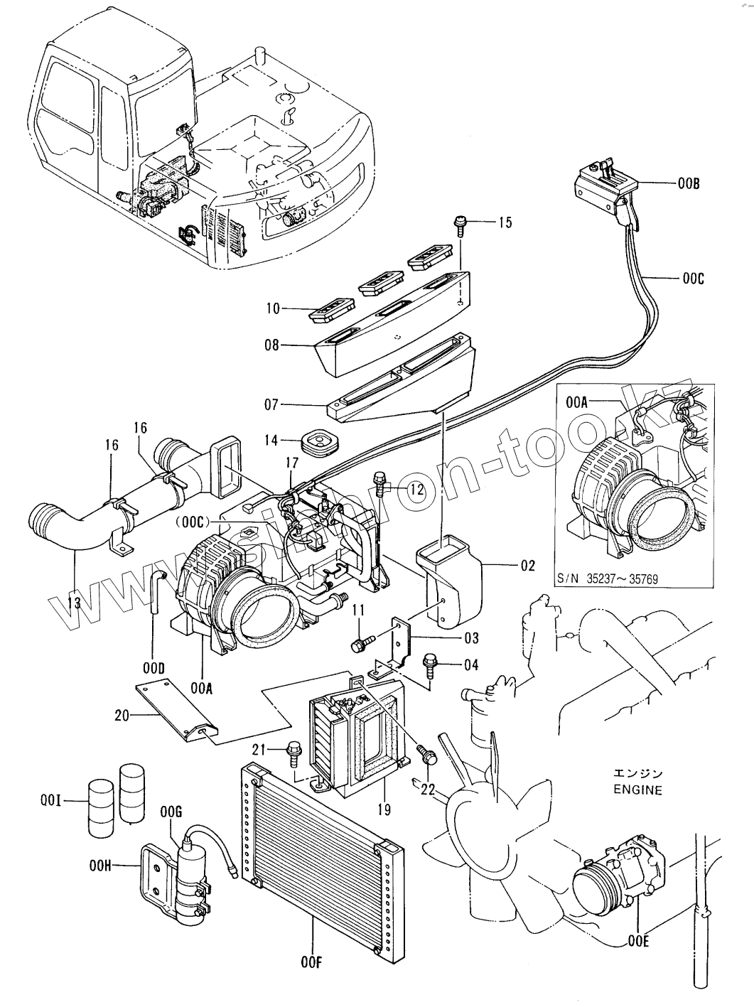 Каталог запасных частей к технике: Hitachi EX-100-3. AIR CONDITIONER (1) (035237 -)