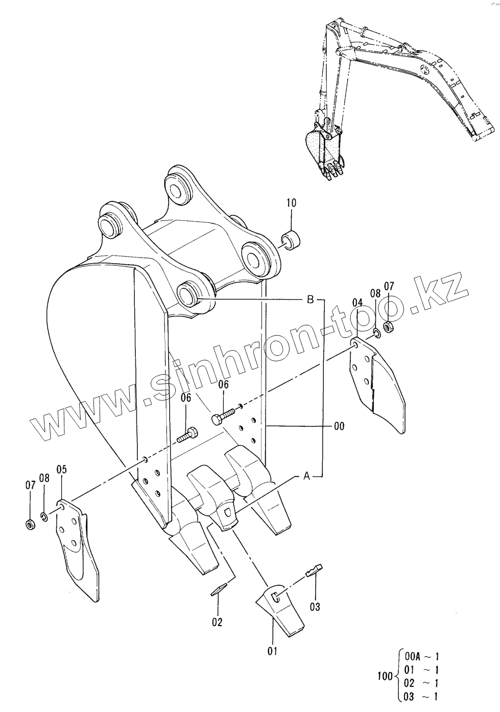 Каталог запасных частей к технике: Hitachi EX-100-3. BUCKET (0.3)<JIS94>
