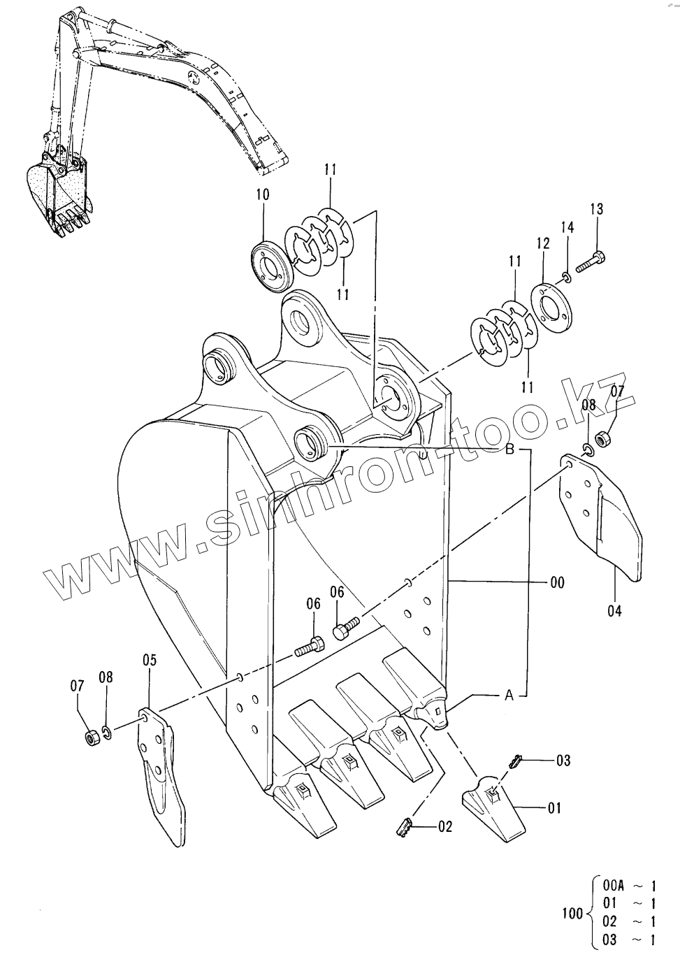 Каталог запасных частей к технике: Hitachi EX-100-3. BUCKET (0.4)<JIS94>