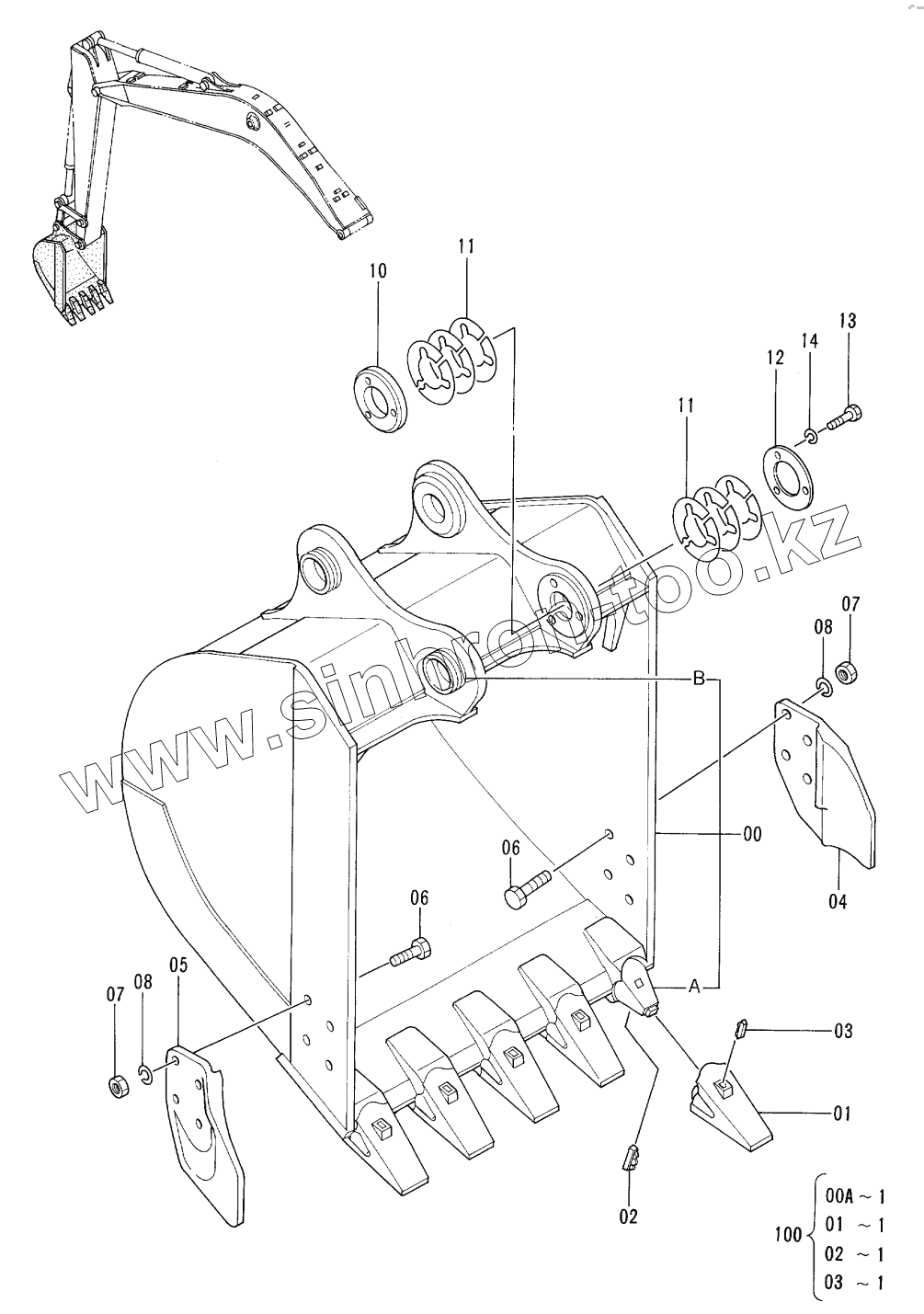 Каталог запасных частей к технике: Hitachi EX-100-3. BUCKET (0.5)<JIS94>