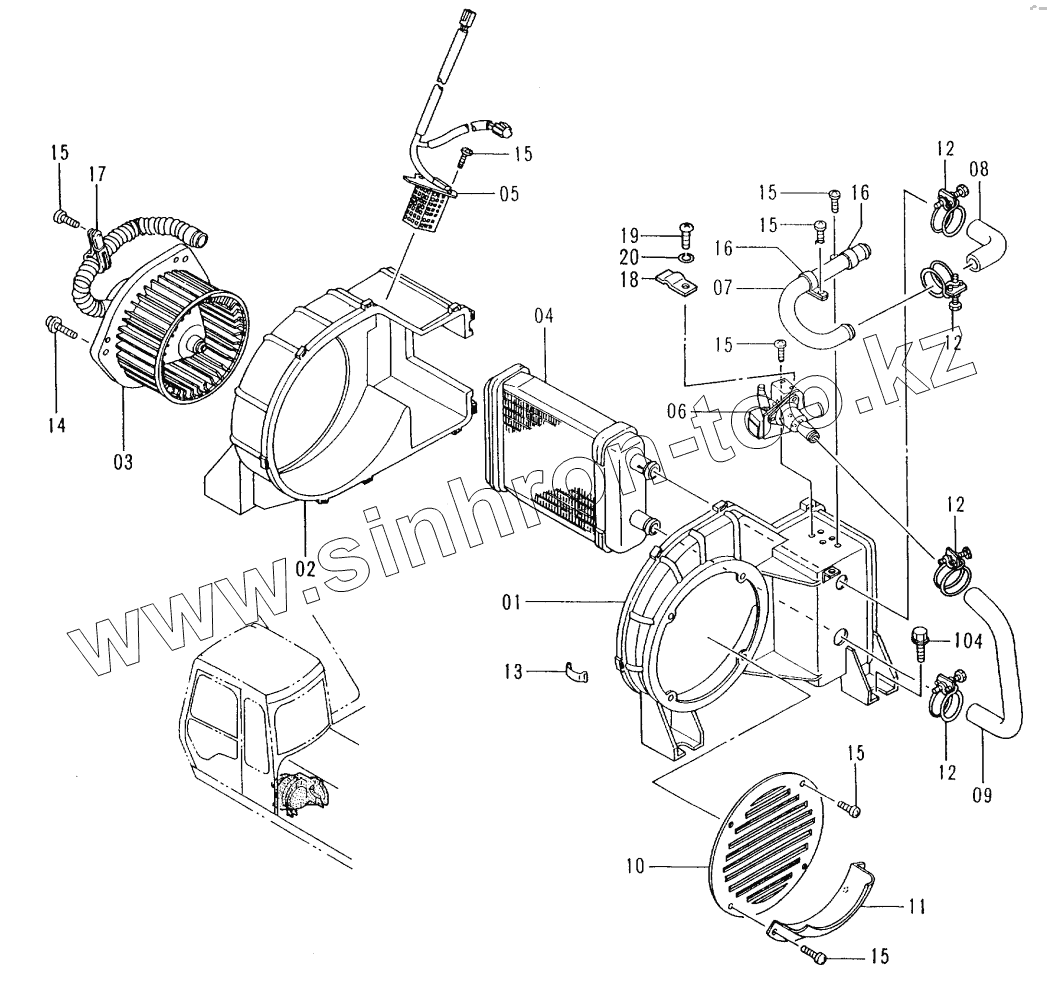 Каталог запасных частей к технике: Hitachi EX-100-3. CAR HEATER (035144 - 036556)