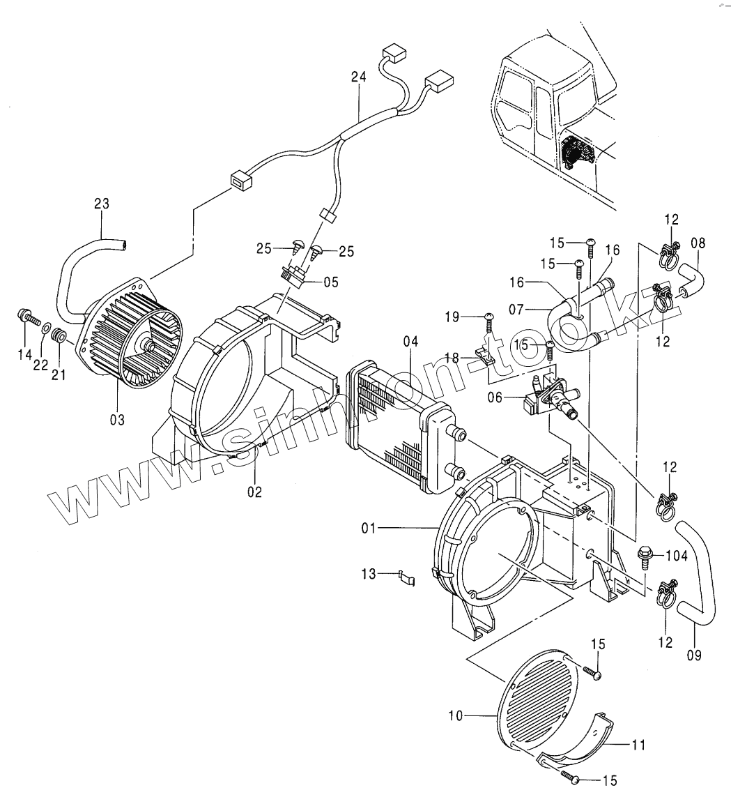 Каталог запасных частей к технике: Hitachi EX-100-3. CAR HEATER (036557 -)