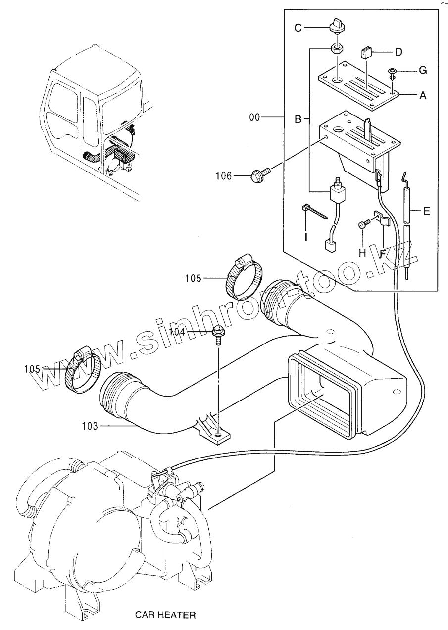 Каталог запасных частей к технике: Hitachi EX-100-3. CAR HEATER PARTS (036557 -)