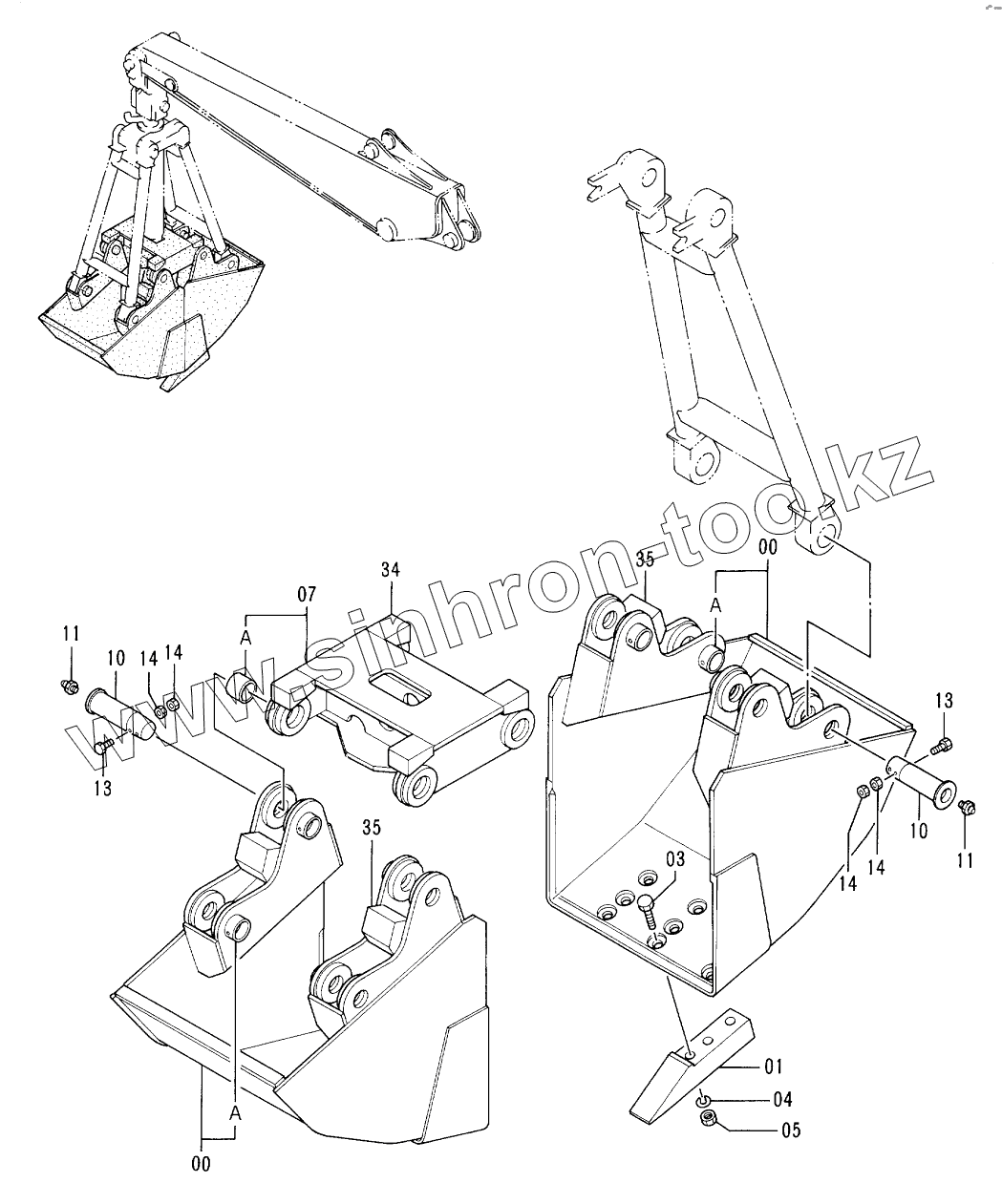 Каталог запасных частей к технике: Hitachi EX-100-3. CLAMSHELL BUCKET (1)