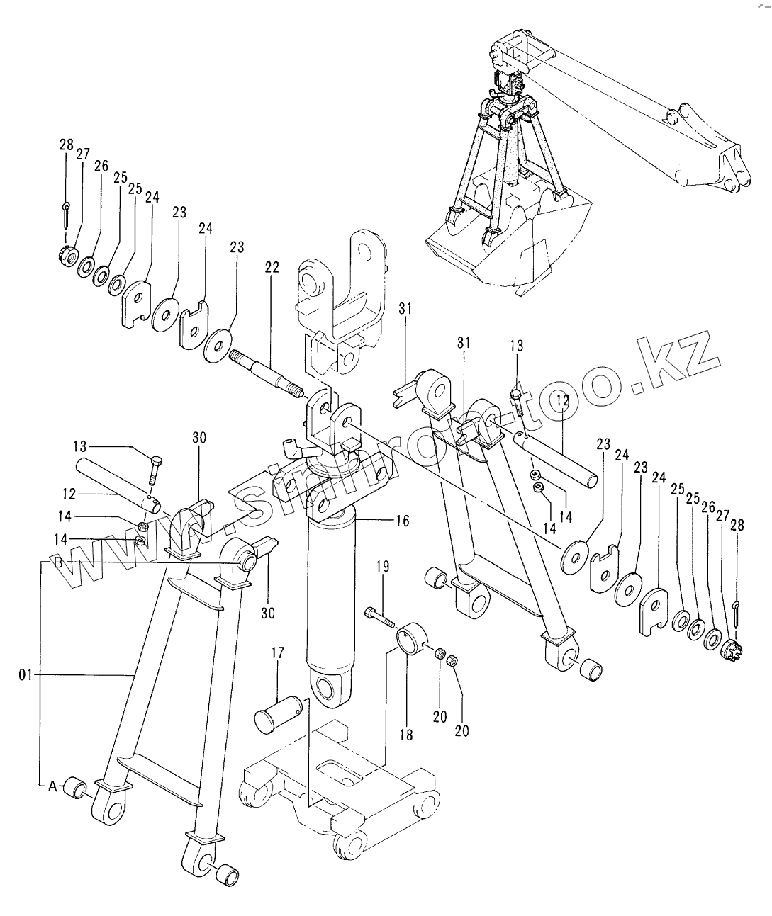 Каталог запасных частей к технике: Hitachi EX-100-3. CLAMSHELL BUCKET (2)
