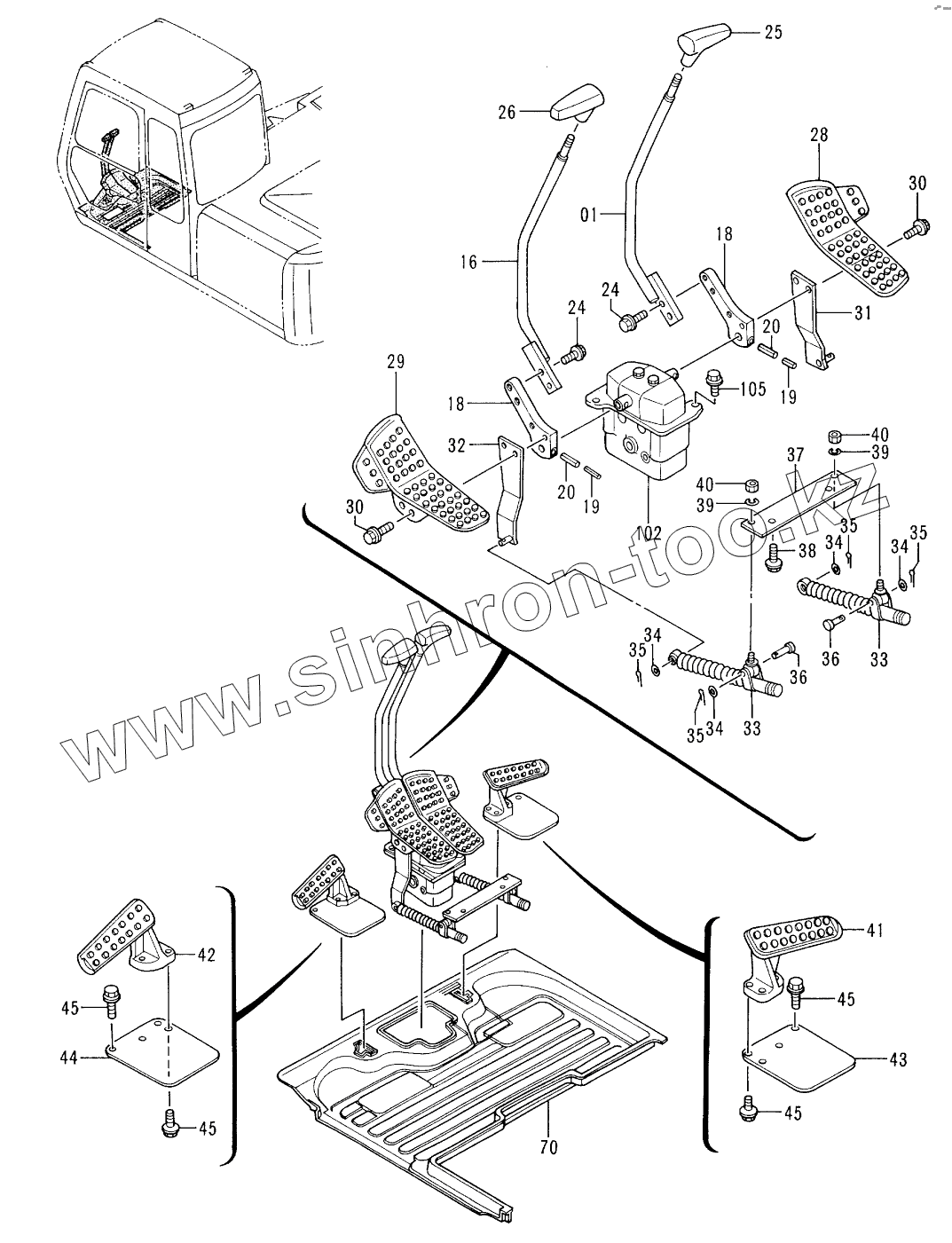 Каталог запасных частей к технике: Hitachi EX-100-3. CONTROL LEVER (2) (035001 - 035909)