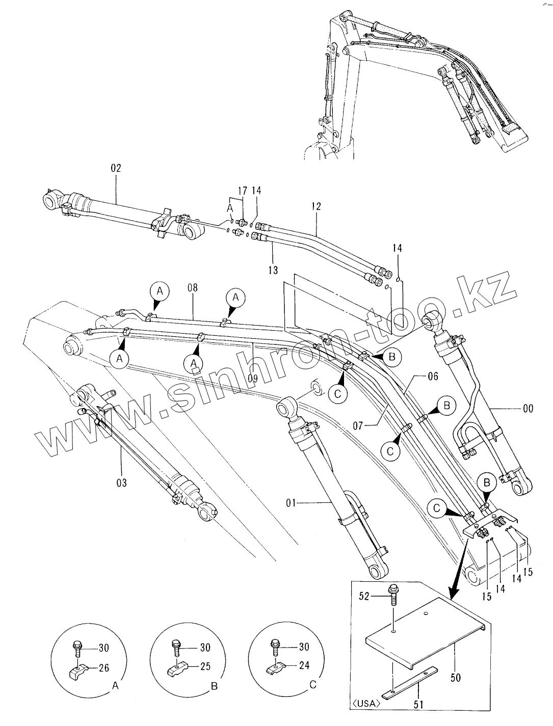 Каталог запасных частей к технике: Hitachi EX-100-3. FRONT PIPINGS (1)