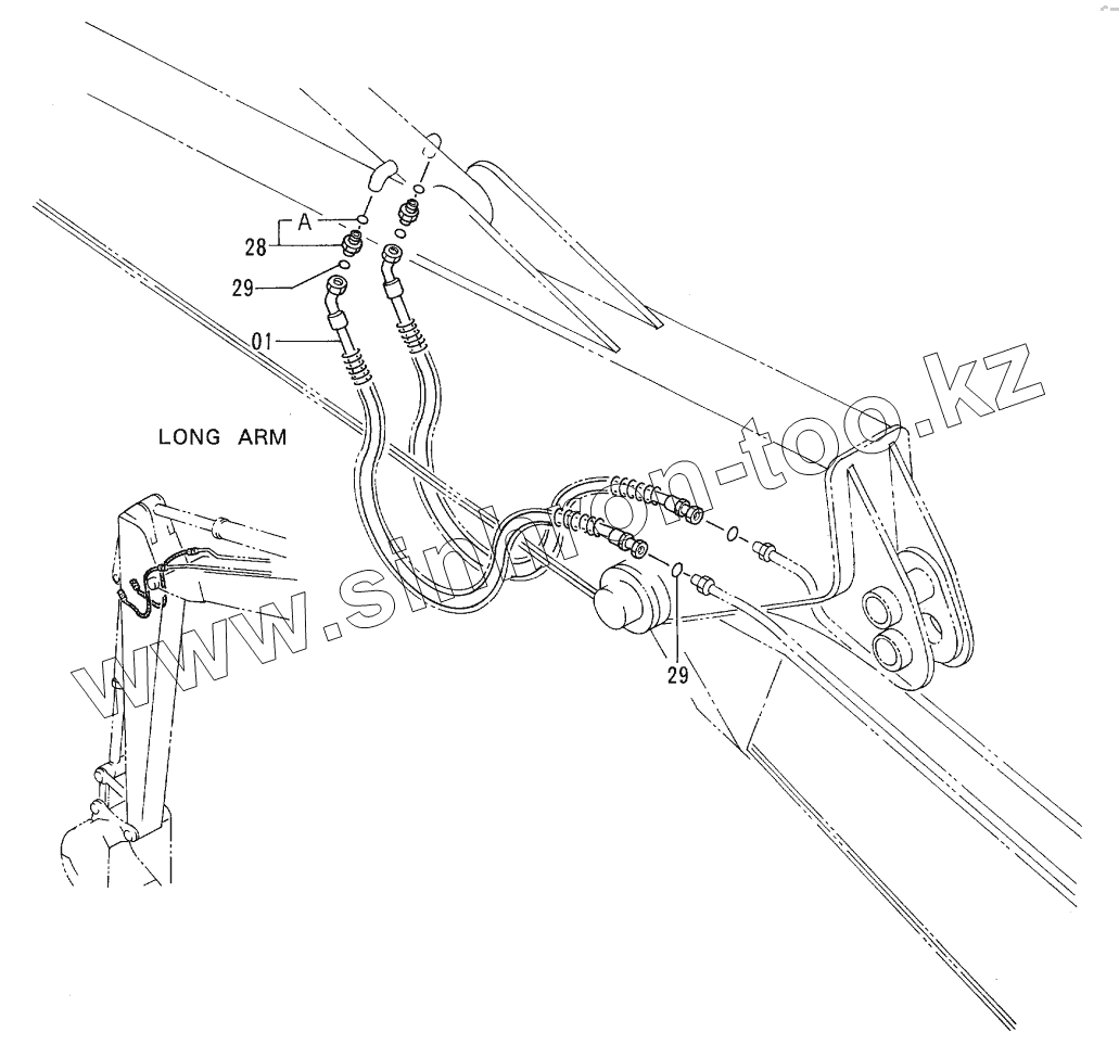 Каталог запасных частей к технике: Hitachi EX-100-3. FRONT PIPINGS (2)(LONG ARM)