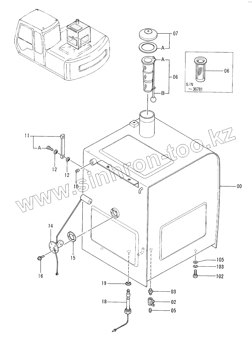 Каталог запасных частей к технике: Hitachi EX-100-3. FUEL TANK