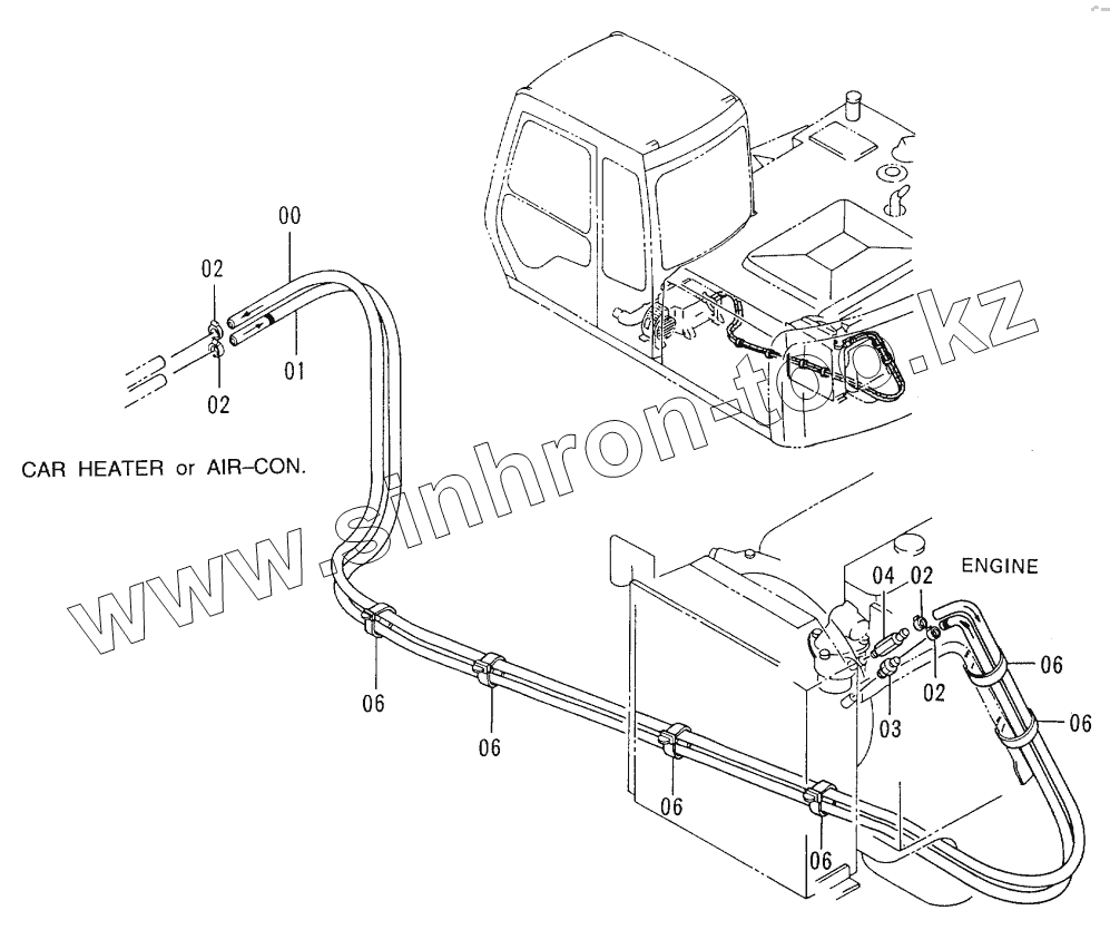 Каталог запасных частей к технике: Hitachi EX-100-3. HEATER PIPINGS