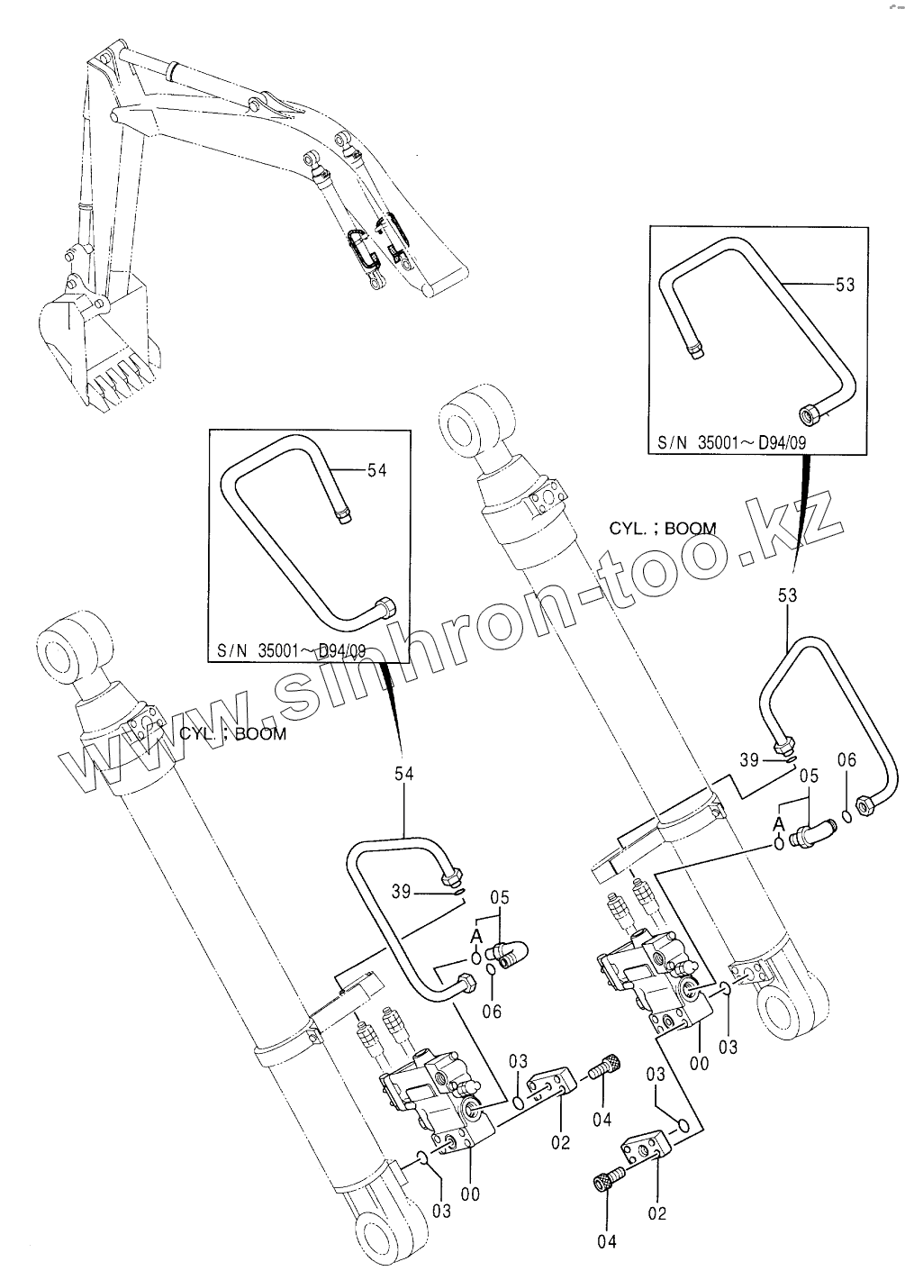 Каталог запасных частей к технике: Hitachi EX-100-3. HOSE RUPTURE VALVE PIPINGS (BOOM) 1