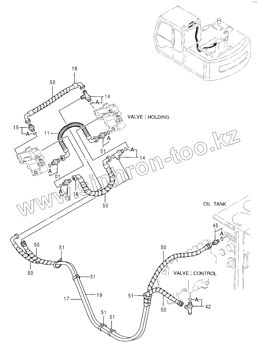 Каталог запасных частей к технике: Hitachi EX-100-3. HOSE RUPTURE VALVE PIPINGS (BOOM) 2