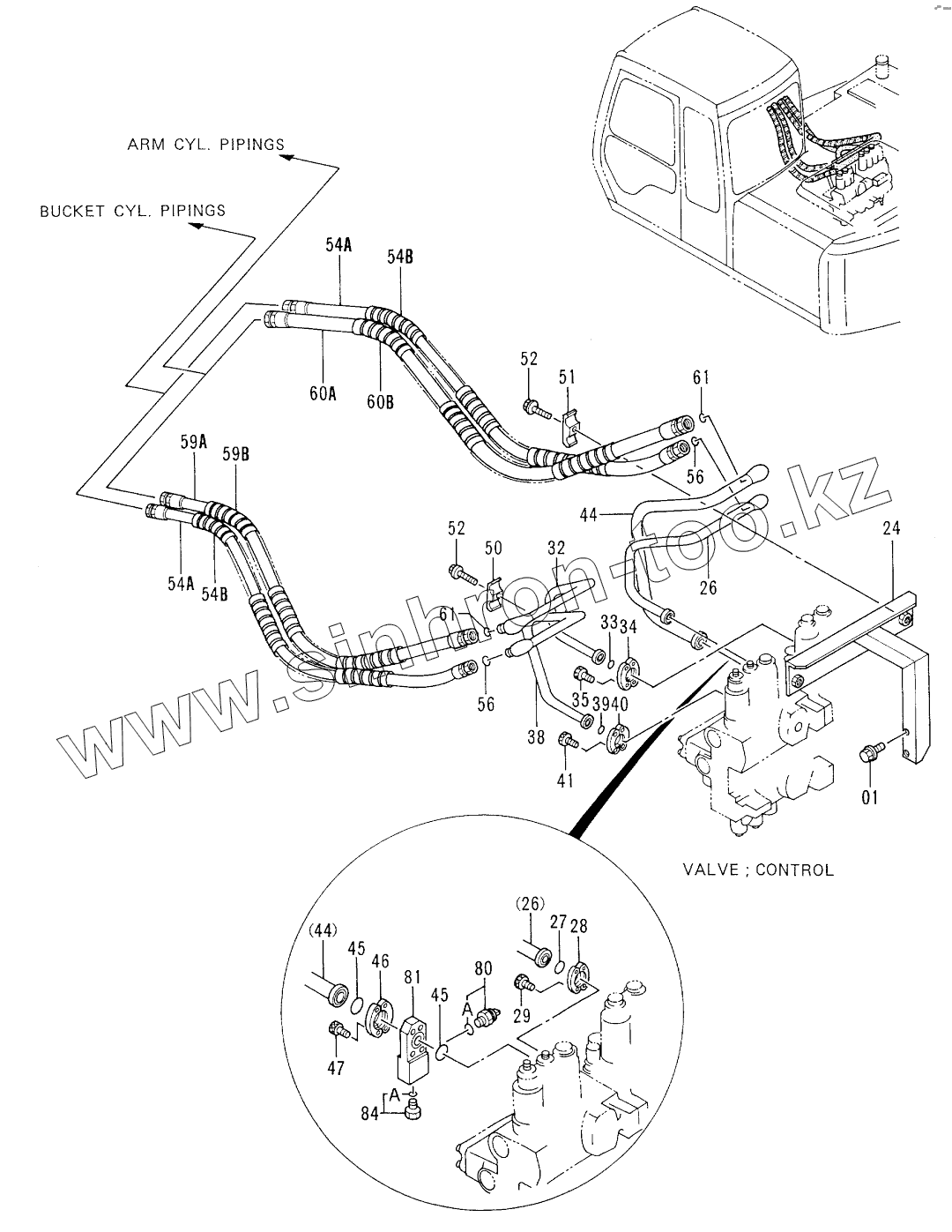 Каталог запасных частей к технике: Hitachi EX-100-3. MAIN PIPINGS (2)