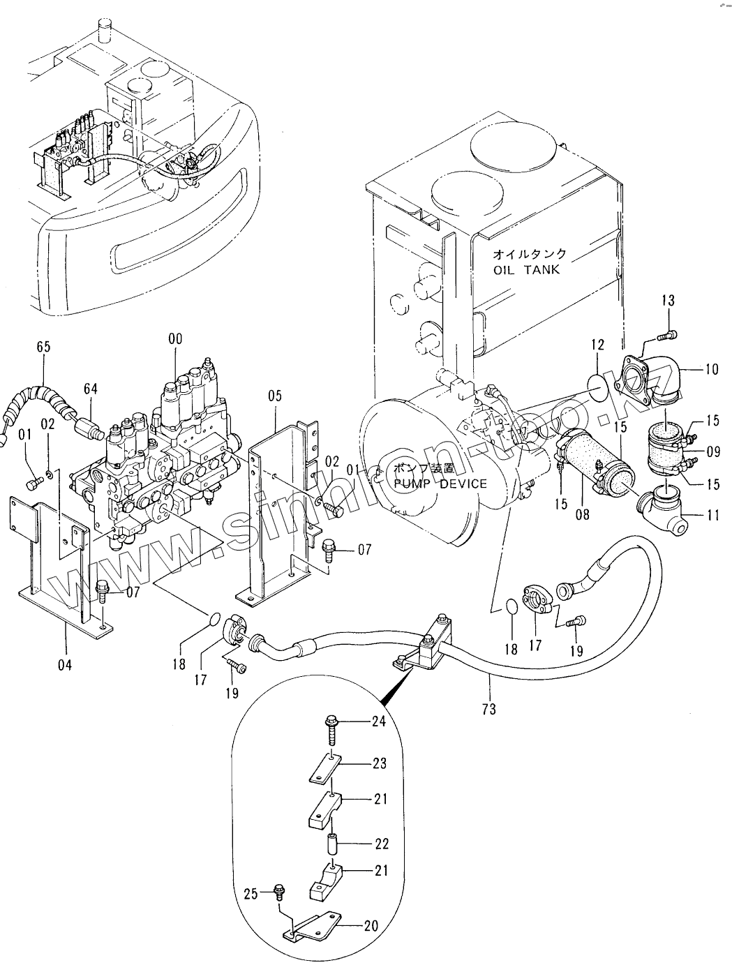 Каталог запасных частей к технике: Hitachi EX-100-3. OIL COOLER PIPINGS (1)
