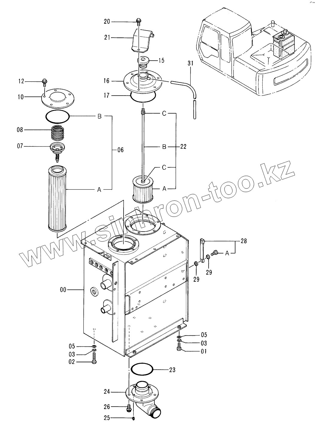Каталог запасных частей к технике: Hitachi EX-100-3. OIL TANK