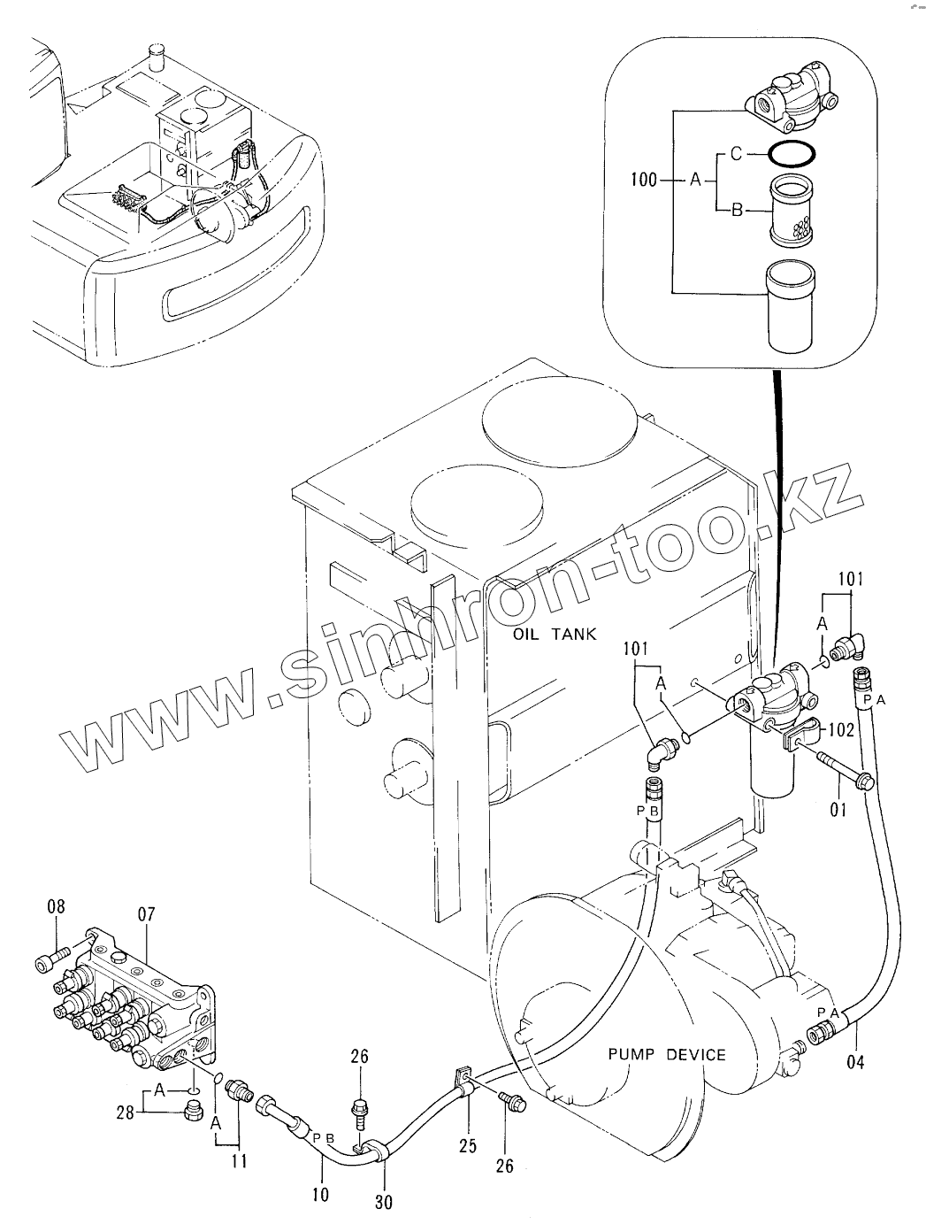 Каталог запасных частей к технике: Hitachi EX-100-3. PILOT PIPINGS (1-1)