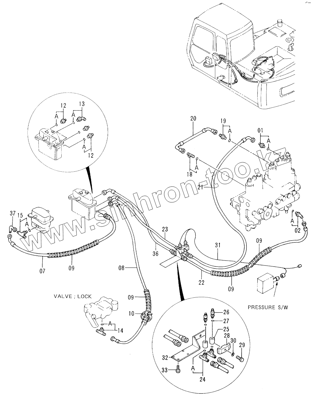 Каталог запасных частей к технике: Hitachi EX-100-3. PILOT PIPINGS <OFFSET BOOM>
