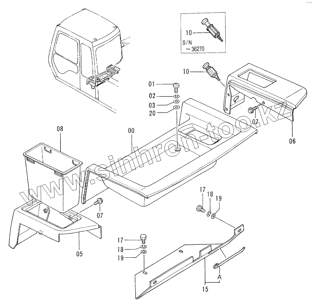 Каталог запасных частей к технике: Hitachi EX-100-3. REAR COVER (INSIDE OF CAB)