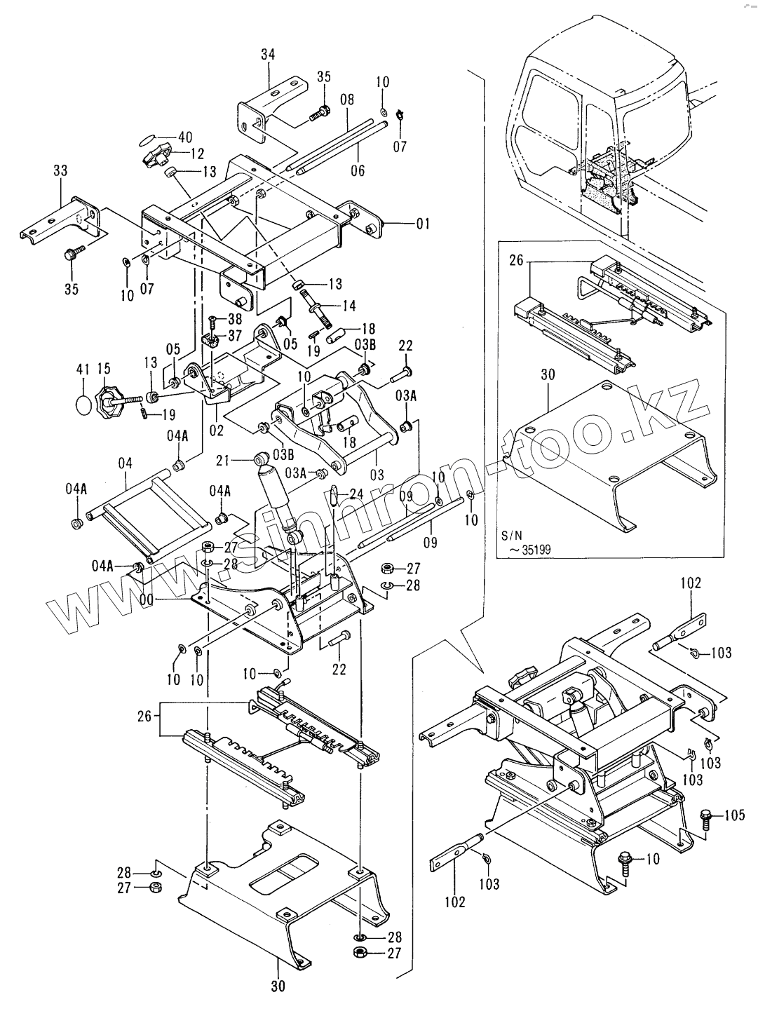 Каталог запасных частей к технике: Hitachi EX-100-3. SEAT SUSPENSION (USA)