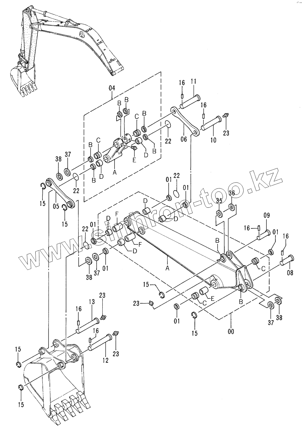 Каталог запасных частей к технике: Hitachi EX-100-3. SHORT ARM (1.96M)