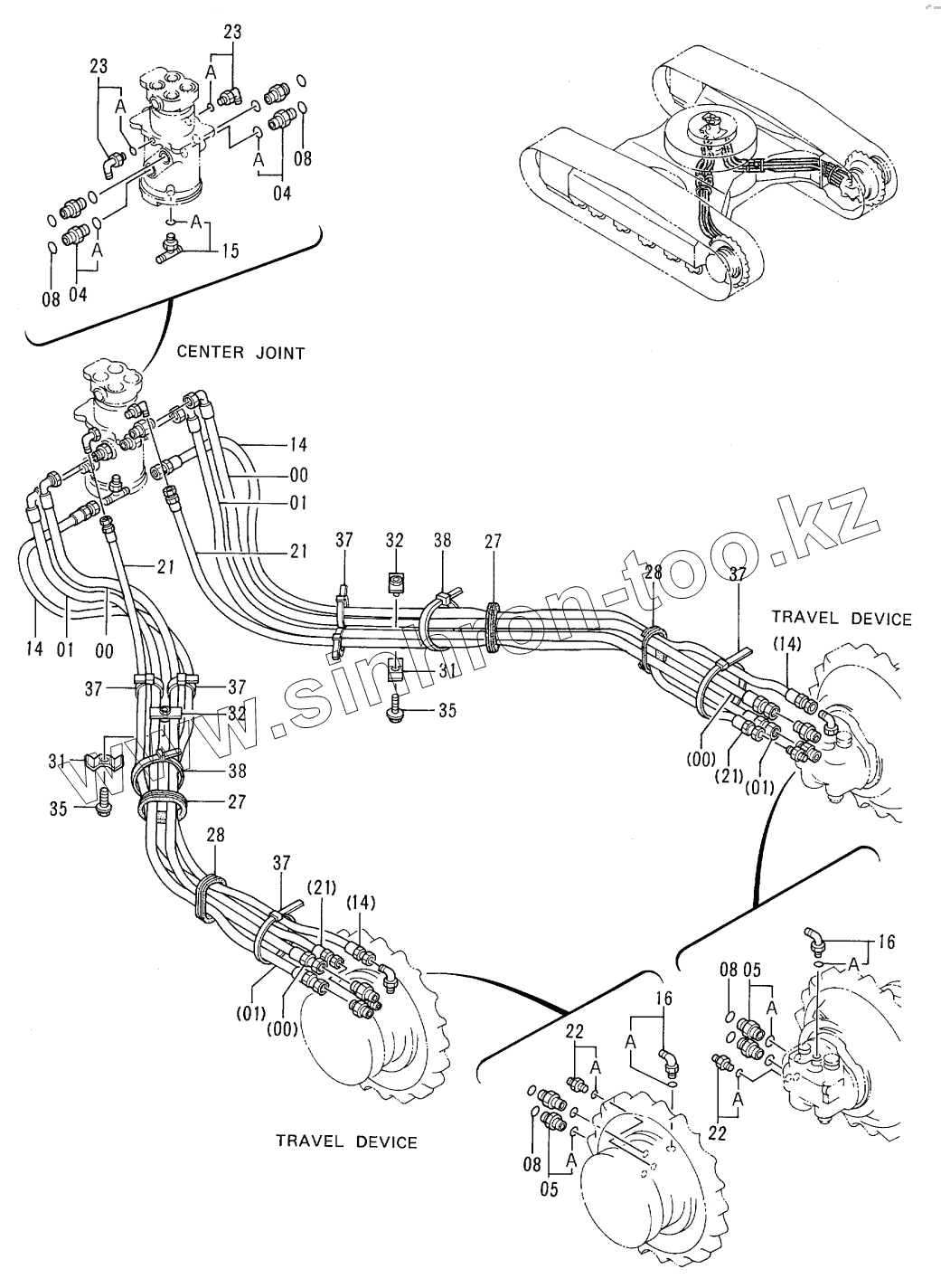 Каталог запасных частей к технике: Hitachi EX-100-3. TRAVEL PIPINGS