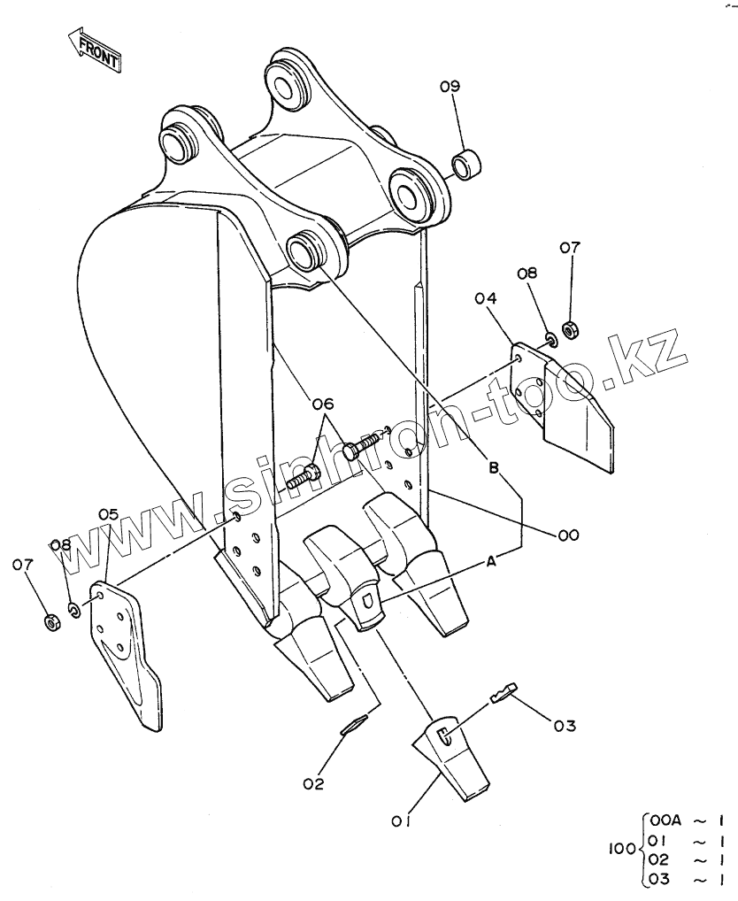 Каталог запасных частей к технике: Hitachi EX-100WD. BUCKET 0.25