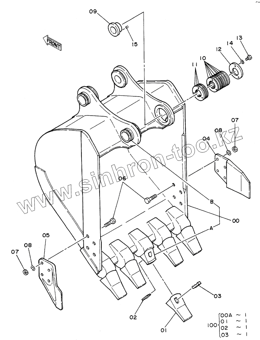 Каталог запасных частей к технике: Hitachi EX-100WD. BUCKET 0.5