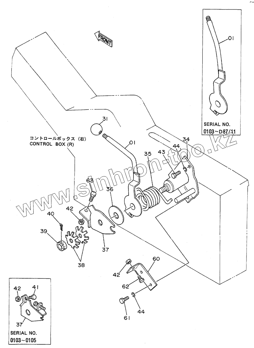 Каталог запасных частей к технике: Hitachi EX-100WD. ENGINE CONTROL LEVER (1)