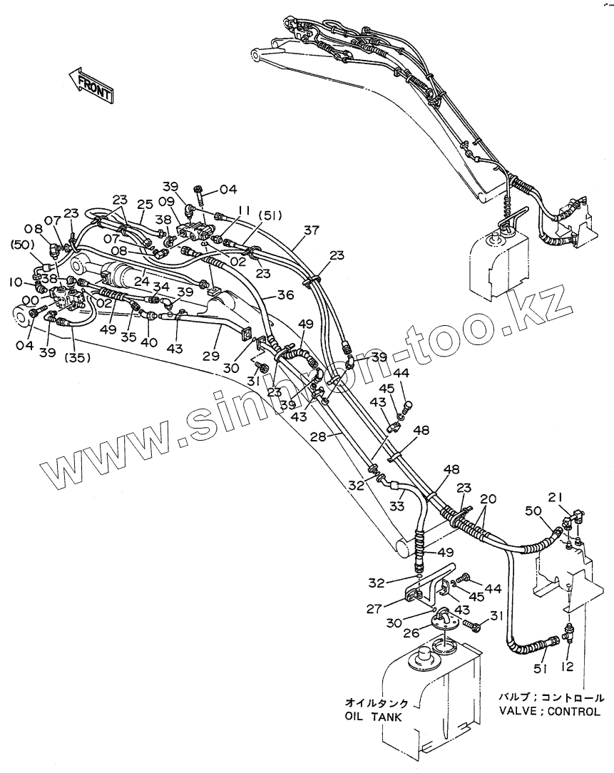 Каталог запасных частей к технике: Hitachi EX-100WD. Hose Rupture Valve Pipings (Arm)