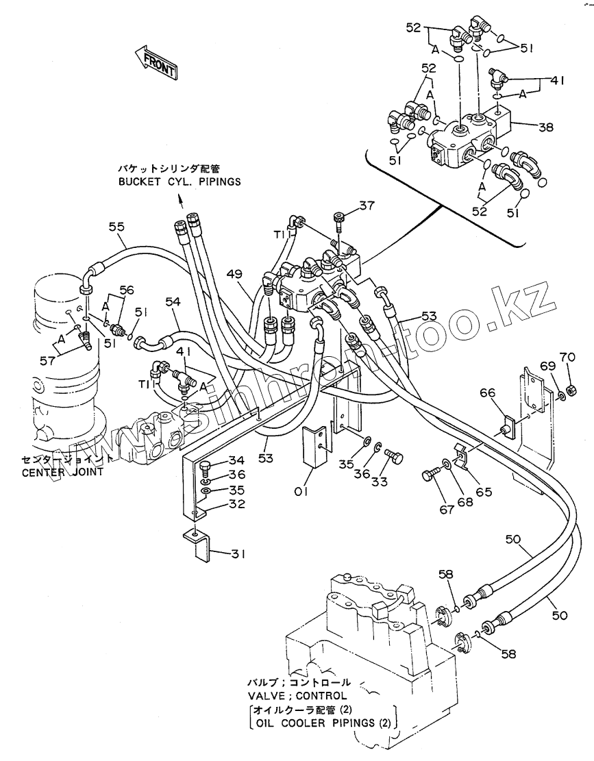 Каталог запасных частей к технике: Hitachi EX-100WD. Independent Outrigger Pipings (Superstructure): 2