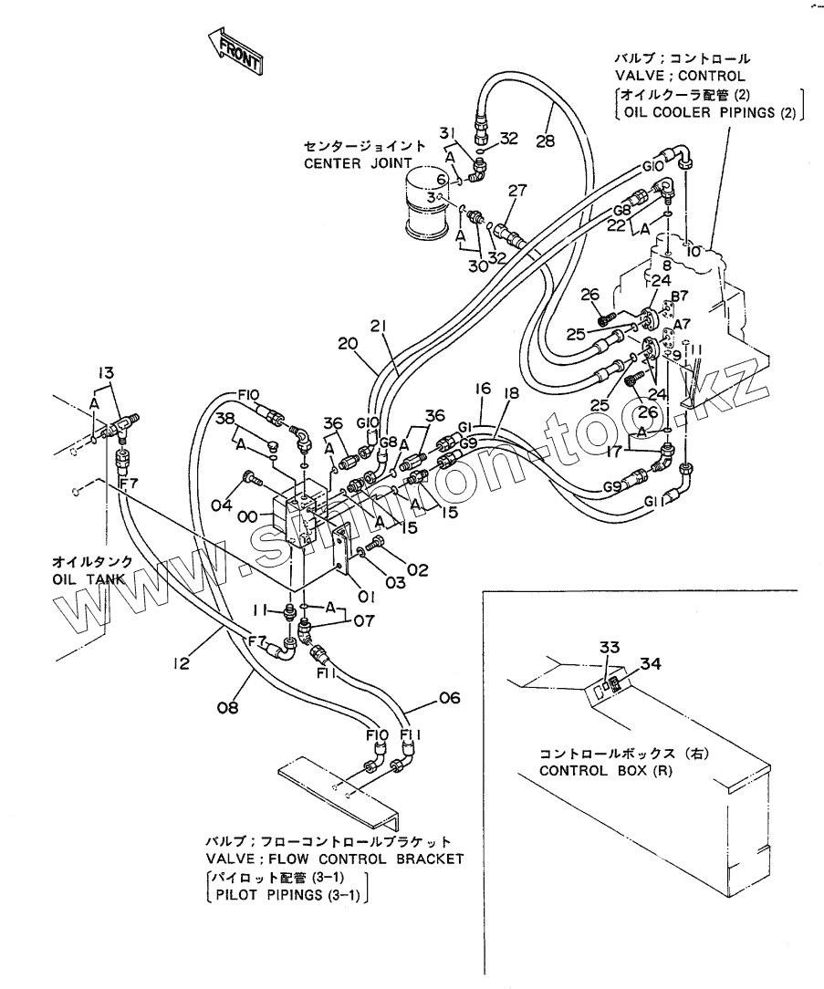 Каталог запасных частей к технике: Hitachi EX-100WD. Outrigger Pipings (Superstructure)