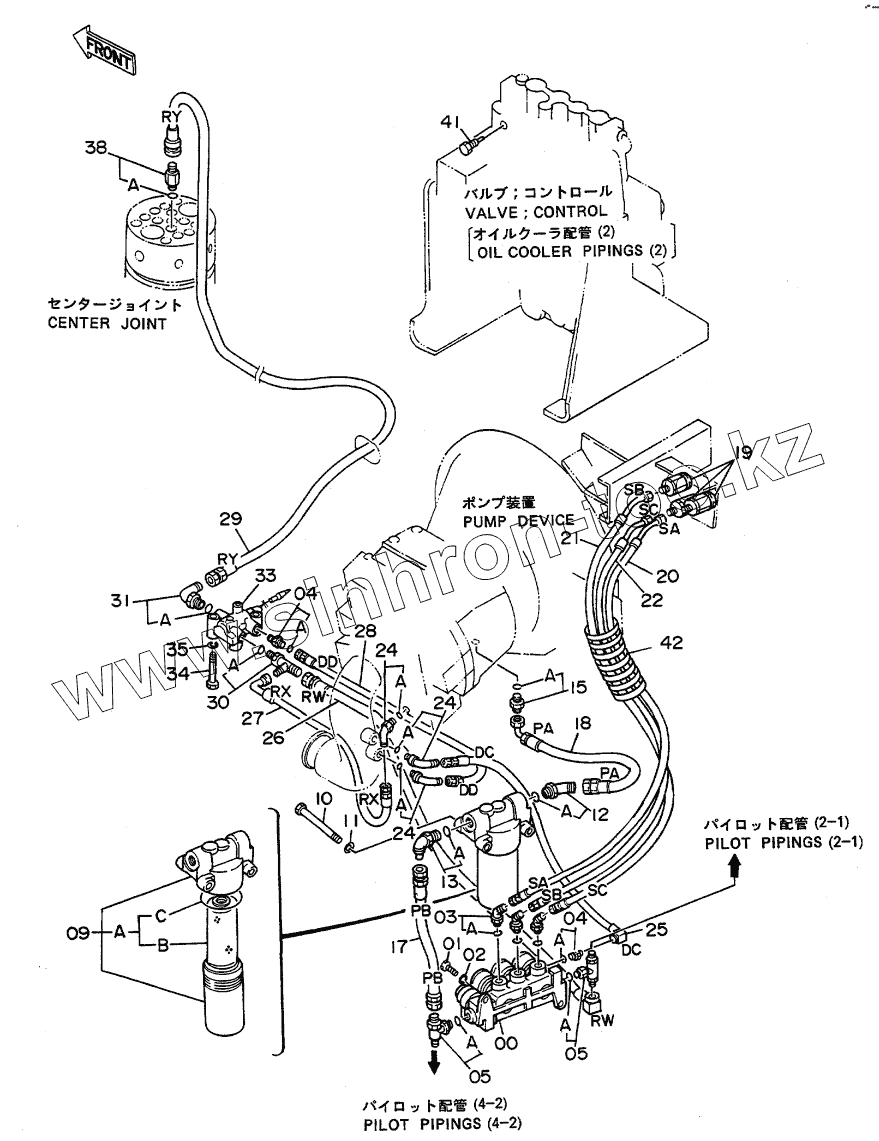 Каталог запасных частей к технике: Hitachi EX-100WD. PILOT PIPINGS (1)