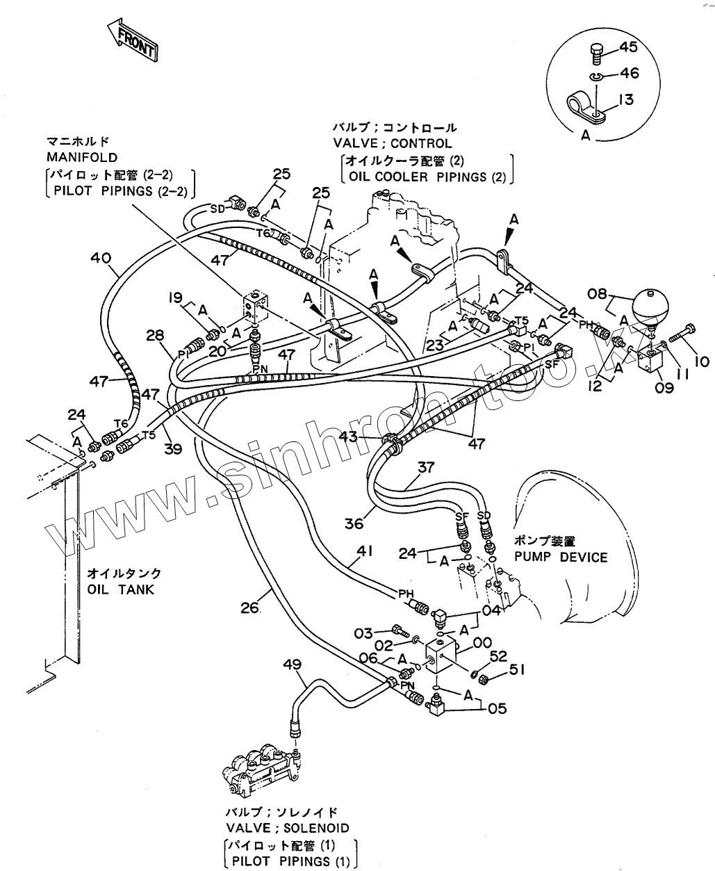 Каталог запасных частей к технике: Hitachi EX-100WD. PILOT PIPINGS (2-1)