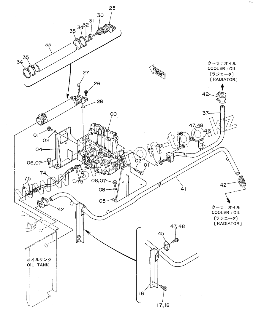 Каталог запасных частей к технике: Hitachi EX-120. OIL COOLER PIPINGS (2)