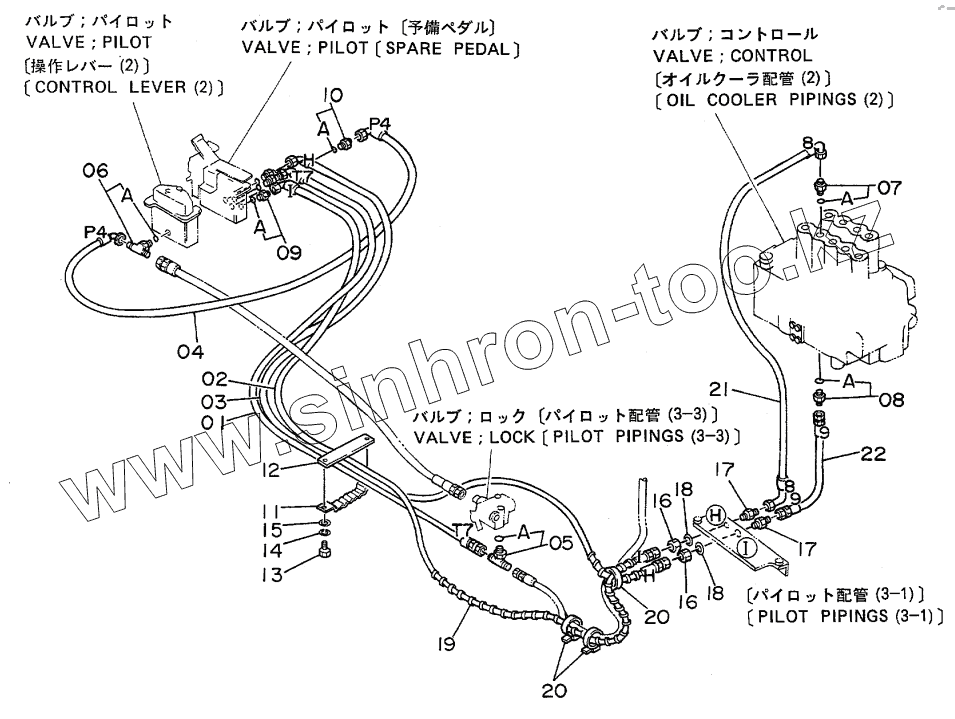 Каталог запасных частей к технике: Hitachi EX-120. PILOT PIPINGS FOR SPARE PEDAL