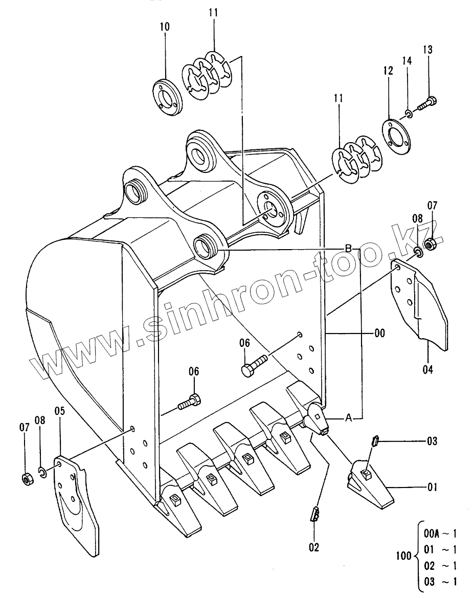 Каталог запасных частей к технике: Hitachi EX-120-2. Bucket 0.45