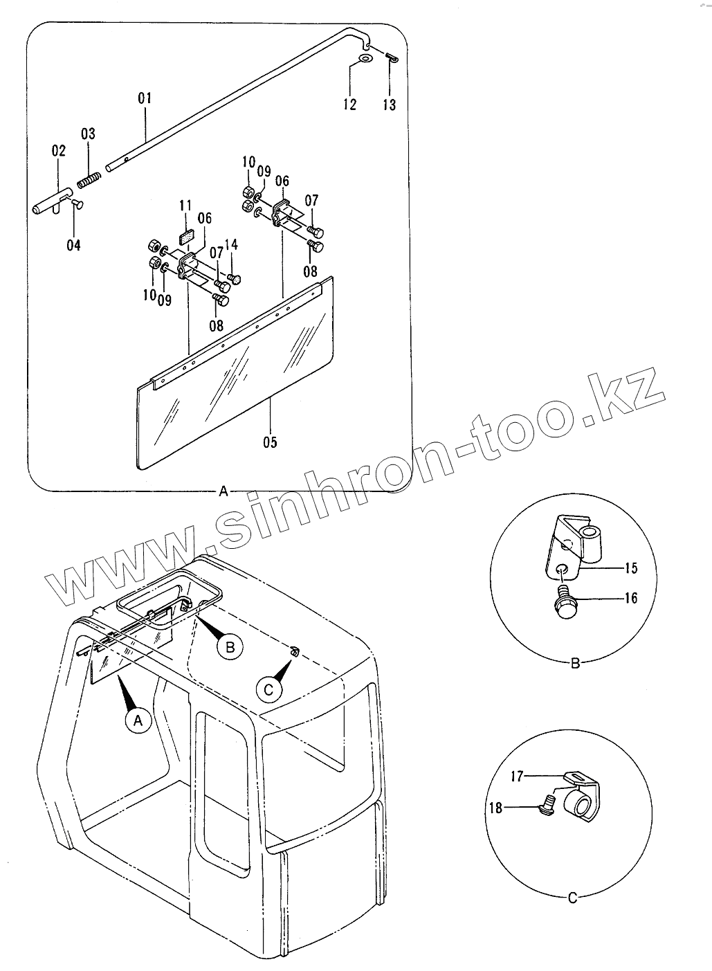 Каталог запасных частей к технике: Hitachi EX-120-2. Cab (7): Sunvisor <N.EUROPE>