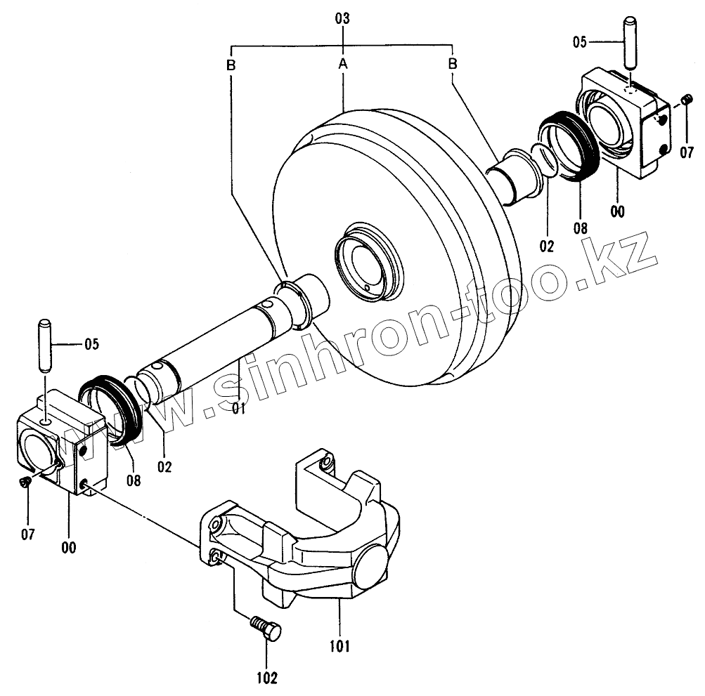 Каталог запасных частей к технике: Hitachi EX-120-2. Front Idler (Rubber Crawler)