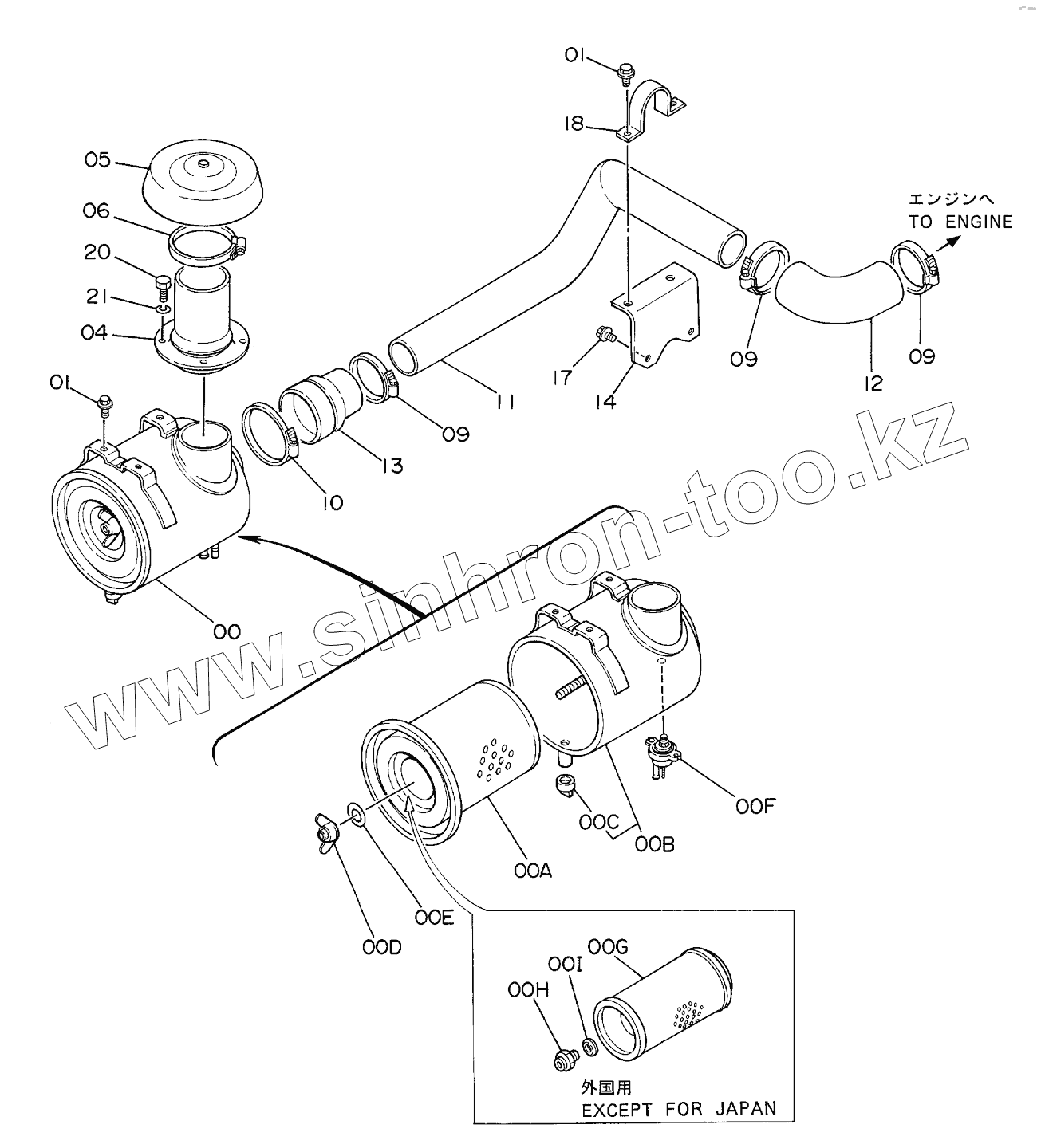 Каталог запасных частей к технике: Hitachi EX-160WD. AIR CLEANER