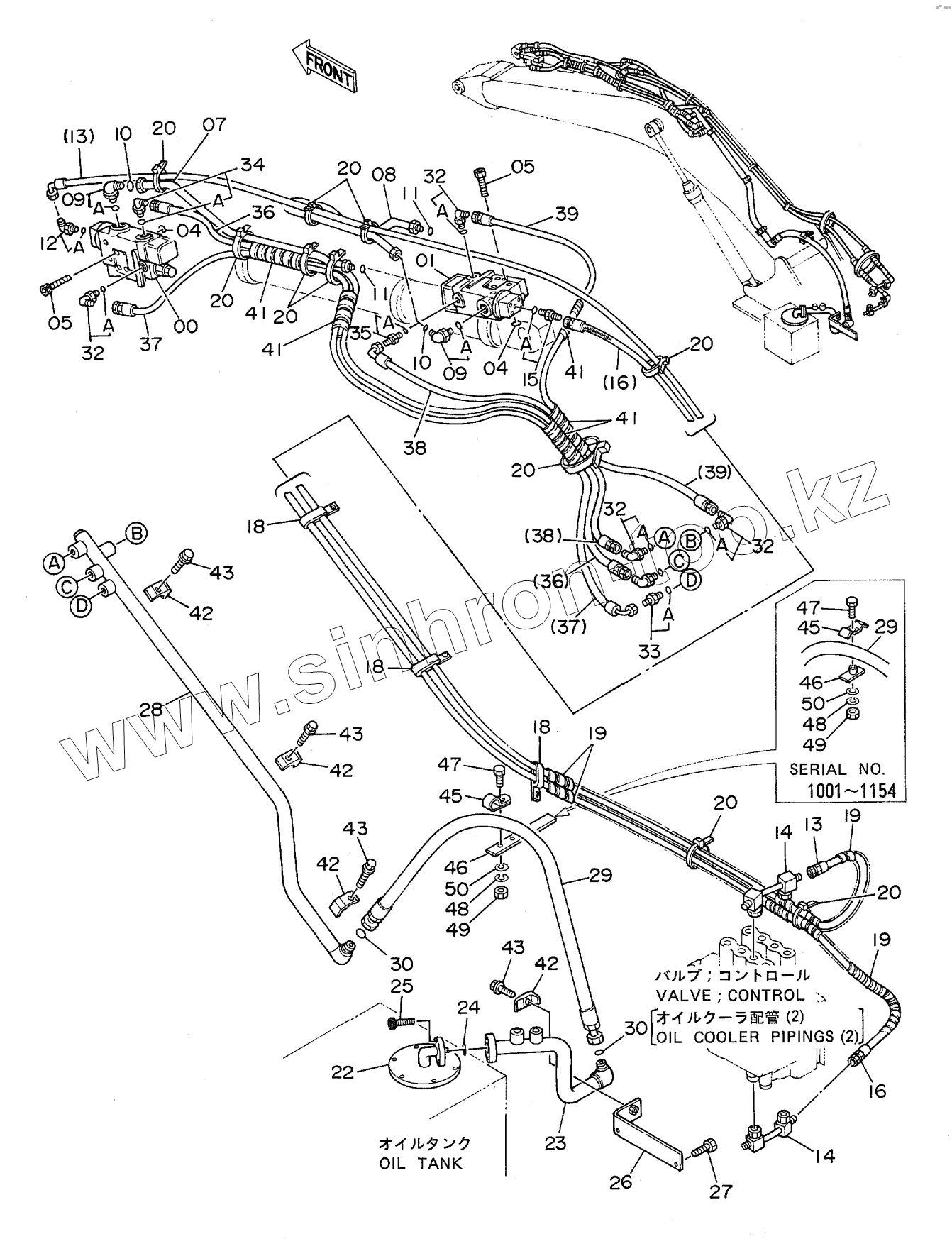 Каталог запасных частей к технике: Hitachi EX-160WD. HOSE RUPTURE VALVE PIPINGS (ARM)