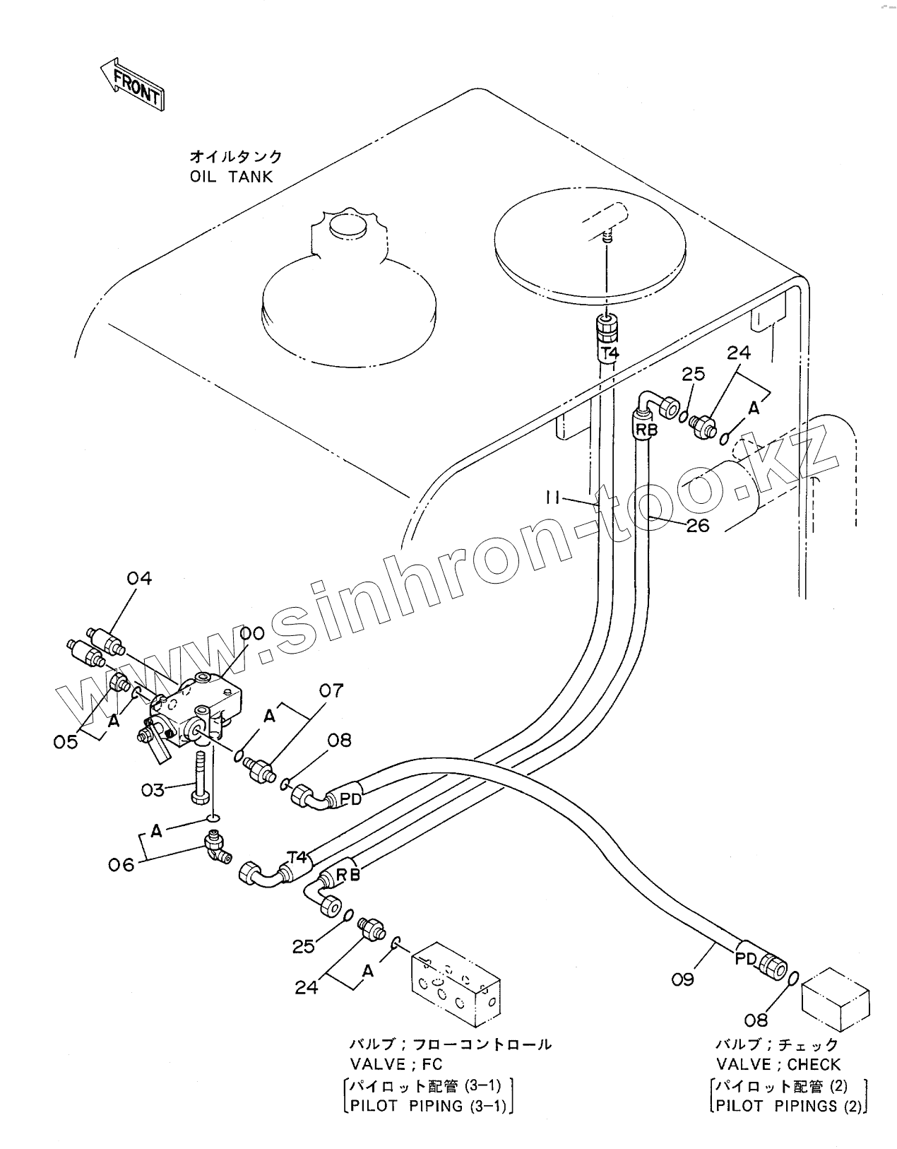 Каталог запасных частей к технике: Hitachi EX-160WD. PILOT PIPINGS (3-3)