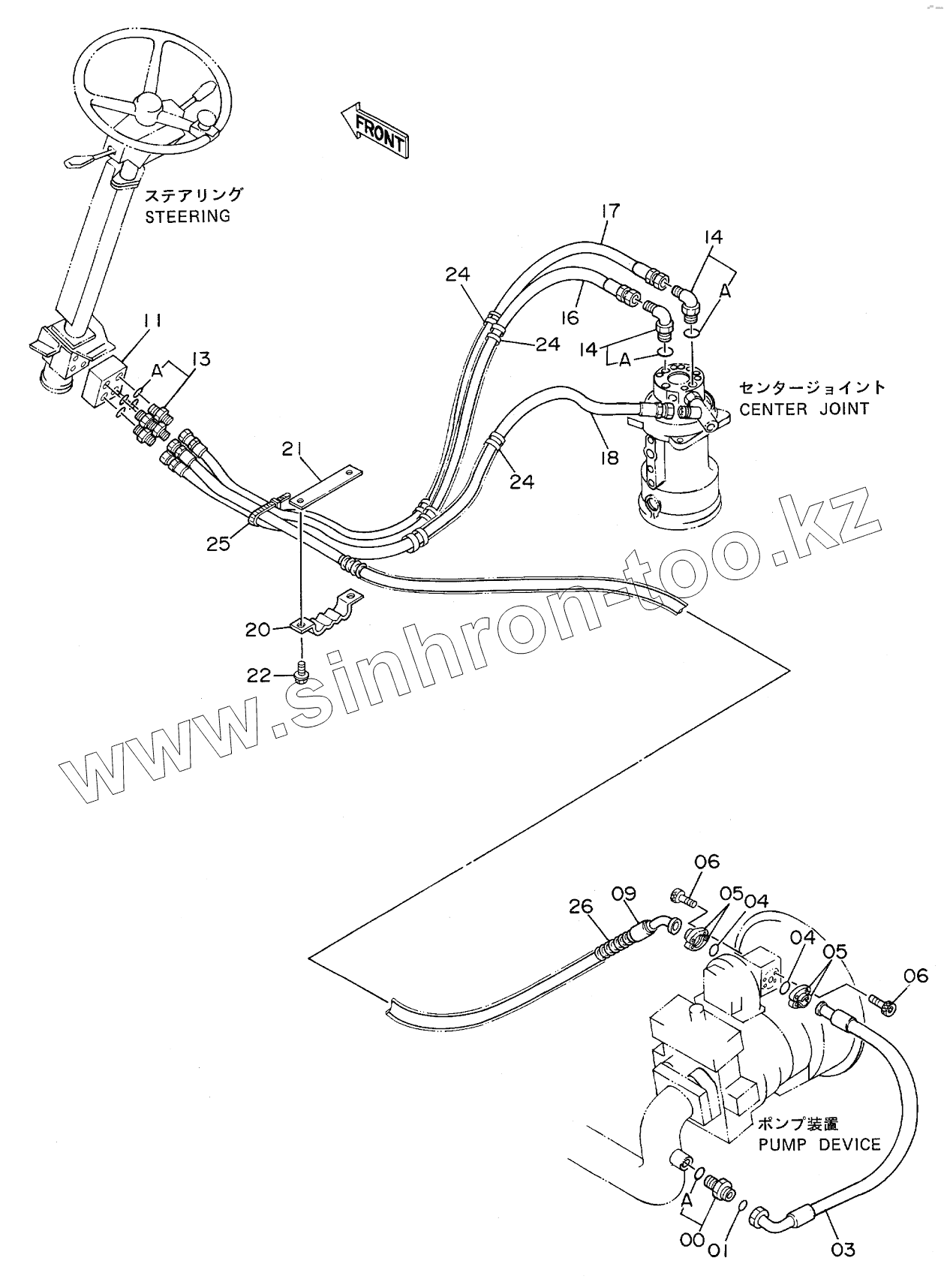 Каталог запасных частей к технике: Hitachi EX-160WD. STEERING PIPINGS (SUPERSTRUCTURE)